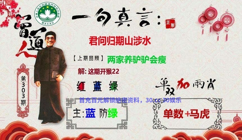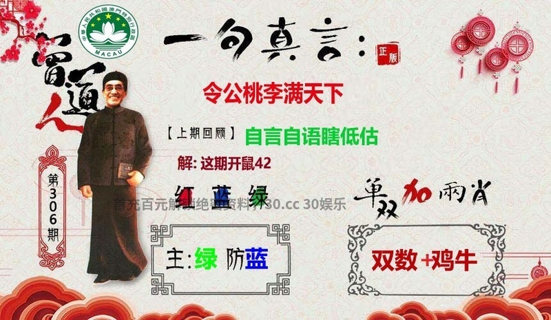 | 306期:令公桃李满天下 解:满天下,解天肖龙牛猪猴马兔 六肖:龙牛猪猴马兔 主码:14.38.17.29.07.31.10.34.24.27 |